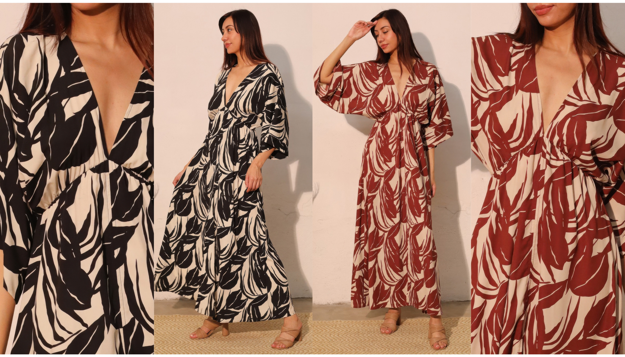 Chiffon Pleated Gold Trim Neck & Belt Cut Out Chest Maxi Dress